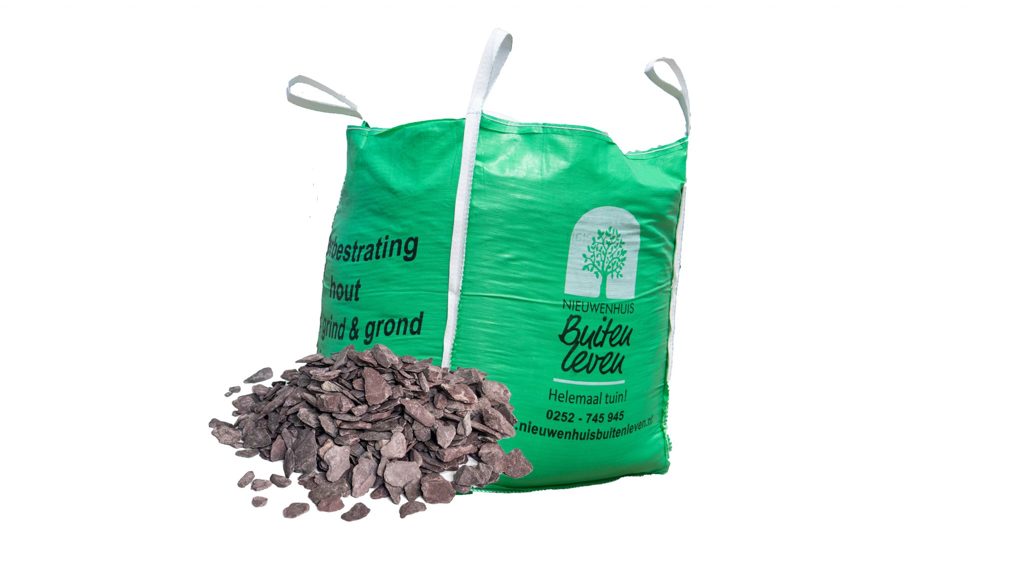 Niet alle soorten grind en split hebben hetzelfde gewicht per m3. Daardoor kan er verwarring zijn over het gewicht en de inhoud van bigbags grind en split. Wij verkopen onze bigbags op kg basis. Het soortelijk gewicht van Canadian Slate Violet 10-30mm is 1400kg per m3.