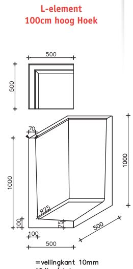 De L-Hoekelementen zijn verkrijgbaar in diverse maten in de kleuren grijs, zwart en roestbruin.