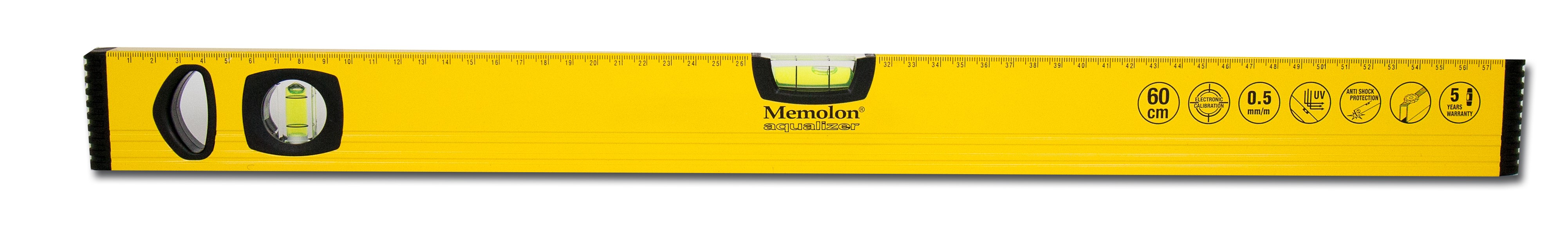Memolon Aqualizer bouwwaterpas 150cm, geel Alu profiel, 3 libellen