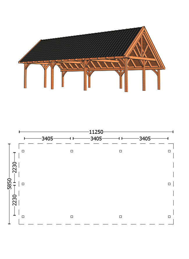 Kapschuur De Hofstee XXL het grootste type kapschuur. Deze kapschuur wordt geleverd met robuuste 190x190mm staanders en ringbalken. Dit zorgt ervoor dat de constructie een degelijke en rustieke uitstraling heeft. De constructie is gemakkelijk en snel te monteren, o.a. door de voorgeboorde schroefgaten en op lengte