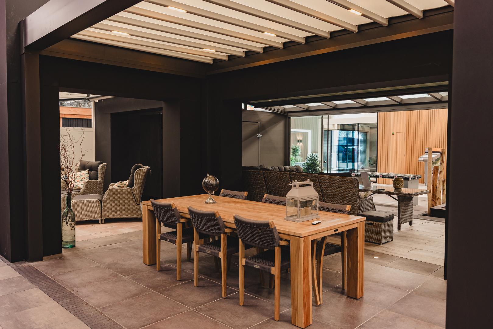 Ontdek onze prachtige, uitgebreide showroom in Nieuw-Vennep. Geniet van authentieke buitenverblijven terwijl u relaxed achterover leunt in een tuinset. Laat je meenemen door inspirerende verhalen van onze verkoopadviseurs en laat dromen werkelijkheid worden terwijl je wandelt tussen robuuste aluminium terrasoverkappingen en moderne lamellendaken. Ook voor bestrating-liefhebbers is er genoeg te zien, onze volledige showroom en showtuin is voorzien van de nieuwste tuintrends op het gebied van tegels, wandbekleding en schuttingen.