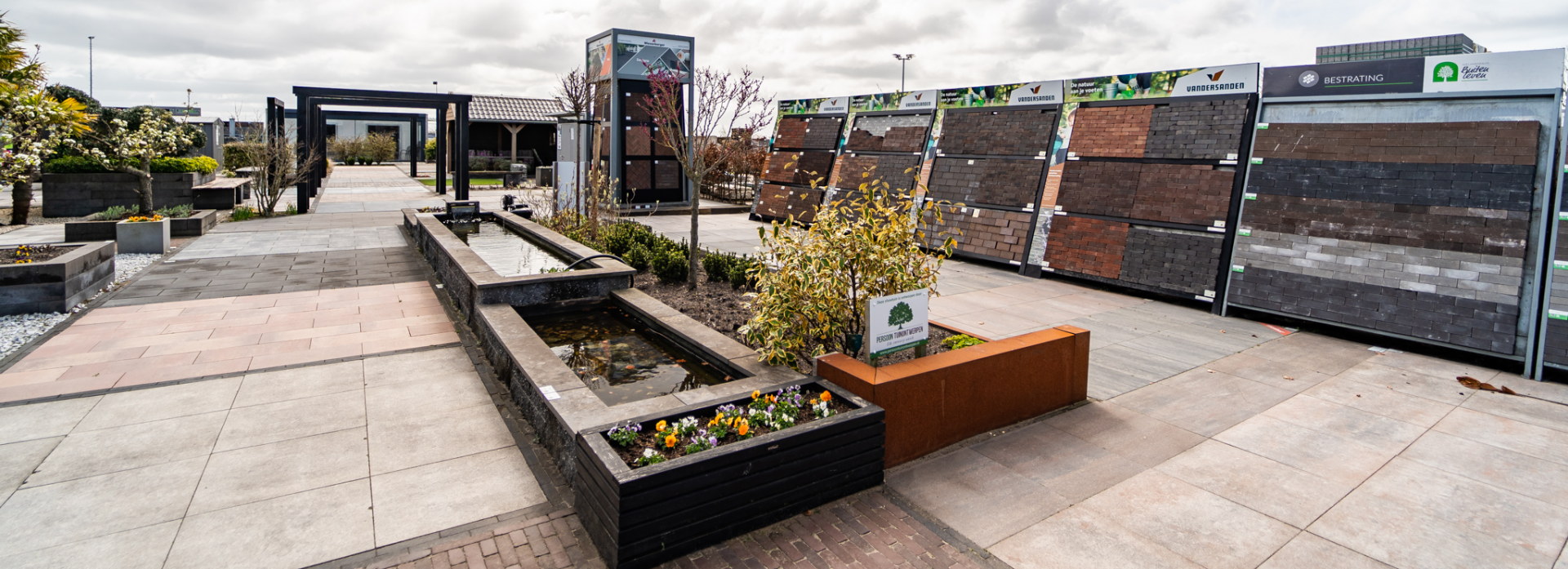 Naast de overdekte showroom is een mooie buiten showtuin aangelegd. Vol met alle soorten bestrating van keramiek, gebakken klinkers, betonnen bestrating en muurelementen. Wandel door voorbeeldtuinen voor de perfecte inspiratie voor jouw tuin. Voel en beleef de verschillende soorten grondstoffen van bestrating voor in de tuin. Bekijk ons uitgebreide assortiment van diverse soorten grind en neem gerust een voorbeeld sample mee om de kleur thuis te testen.