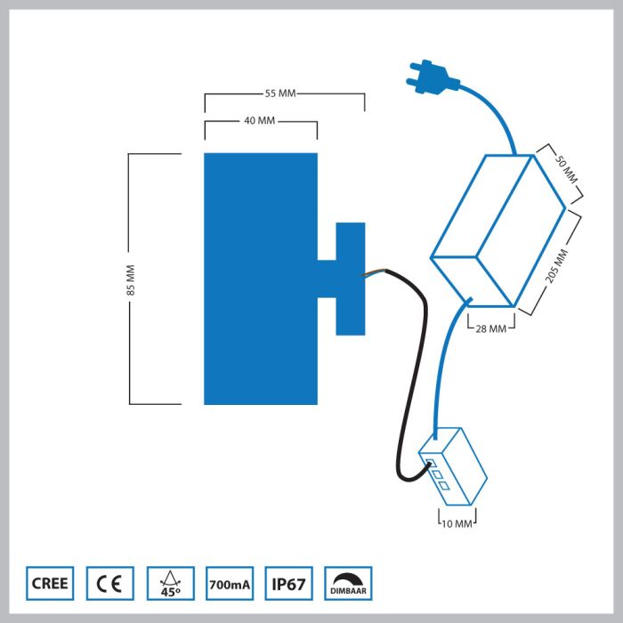 De Lamego wandlamp is geschikt om op de buitenkant van de staanders van jouw veranda te plaatsen. De lamp heeft dan ook een IP-waarde van 67 (IP-67). Dat betekent dat de lamp bestand is tegen spat- en spuitwater en stofdicht is. De wandlamp is dus weersbestendig. De lamp is voorzien van een 7 meter lange kabel met aan het uiteinde een koppelstuk. Het koppelstuk dien je in de connector van jouw veranda set te pluggen.